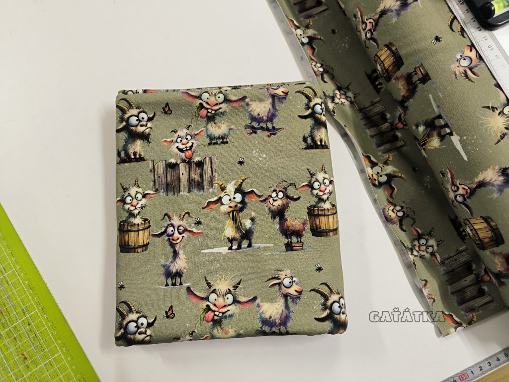 Látka pěkně pruží do šířky a trošku méně do délky.