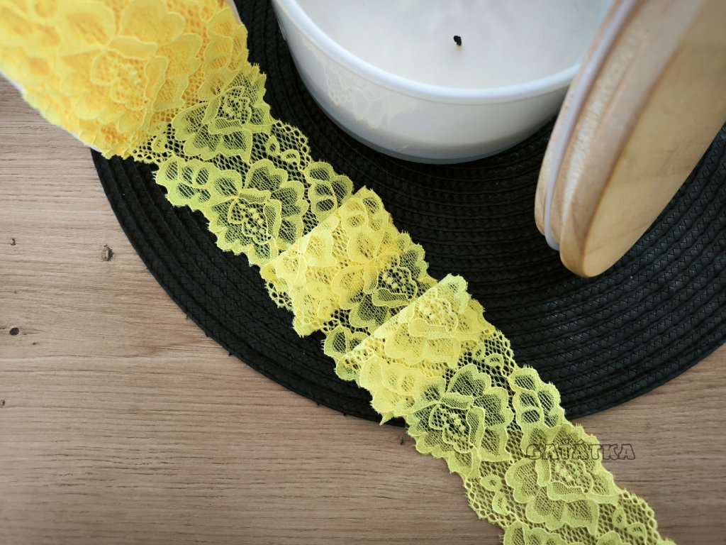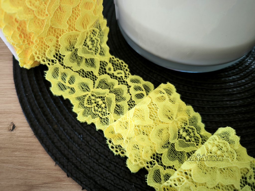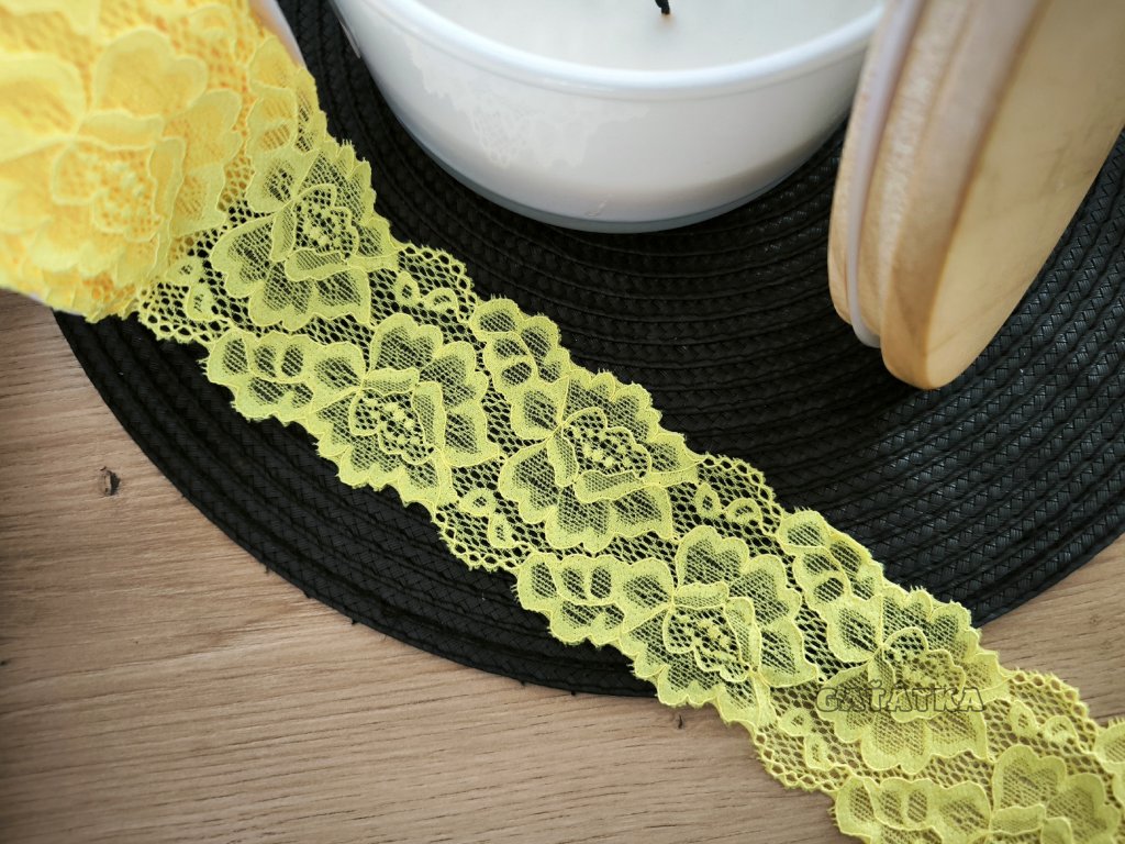 Elastická krajka 5,5cm - neon žlutá