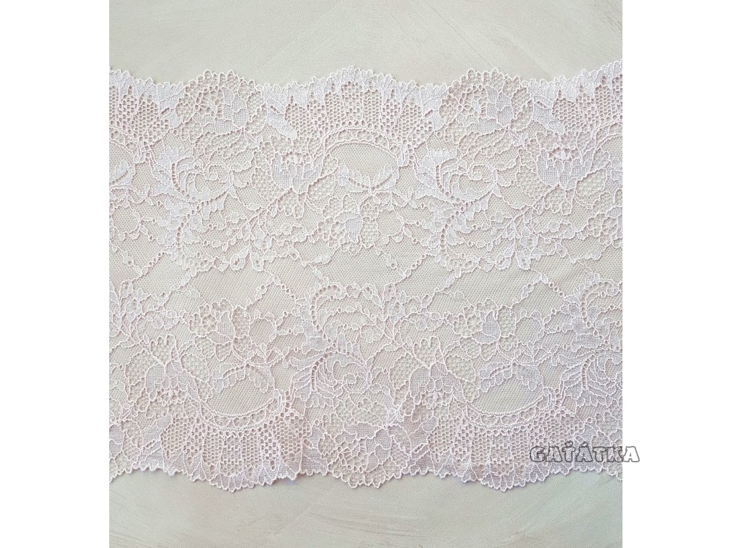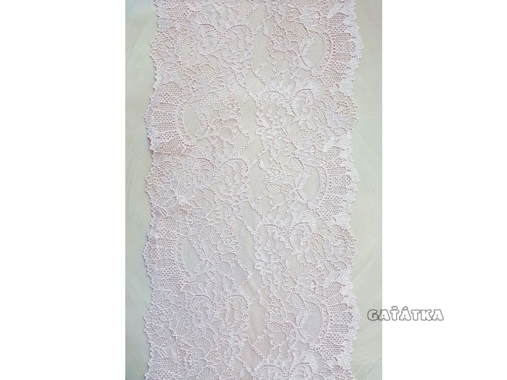 Elastická krajka v šíři 23cm (230mm) je velmi příjemná k pokožce a vhodná na ušití spodního prádla na ozdobné lemy rukávů nebo šatů.