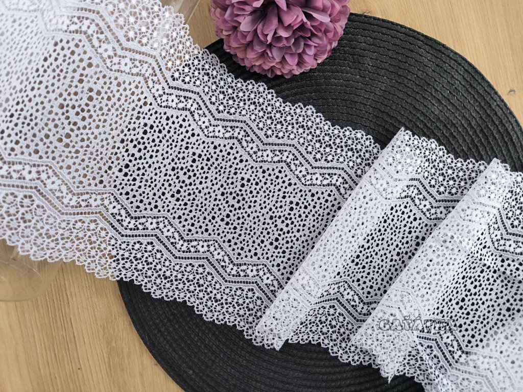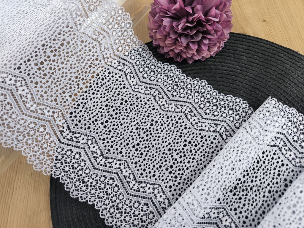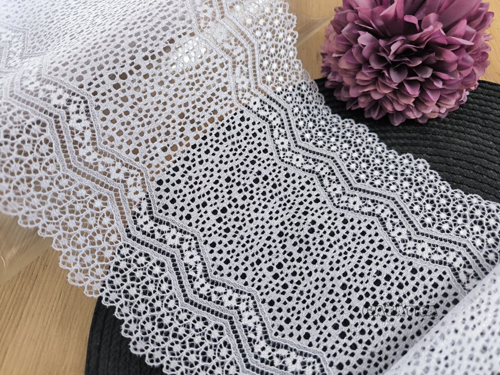 Elastická krajka v šíři 19cm - bílá