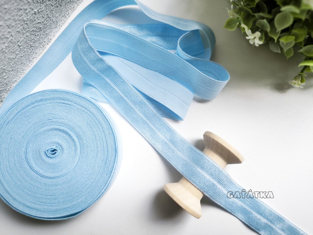 Půlená lemovací gumička, která je velmi příjemná na omak, krásně pruží a dobře se s ní pracuje.
