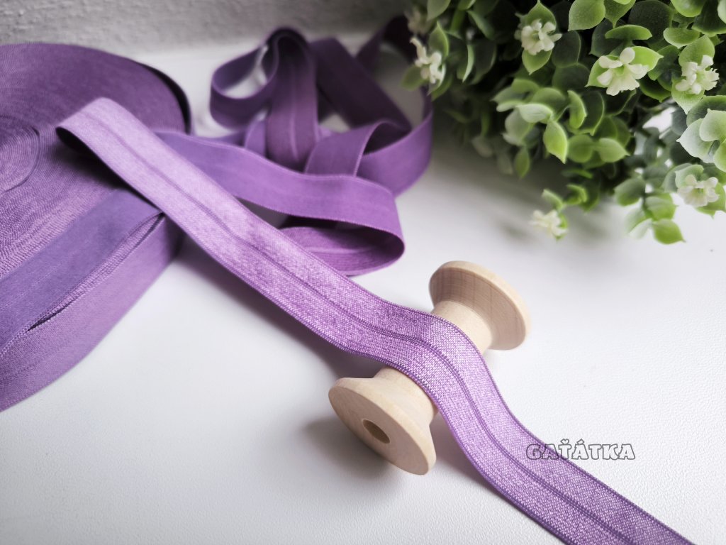 Půlená lemovací gumička, která je velmi příjemná na omak, krásně pruží a dobře se s ní pracuje.