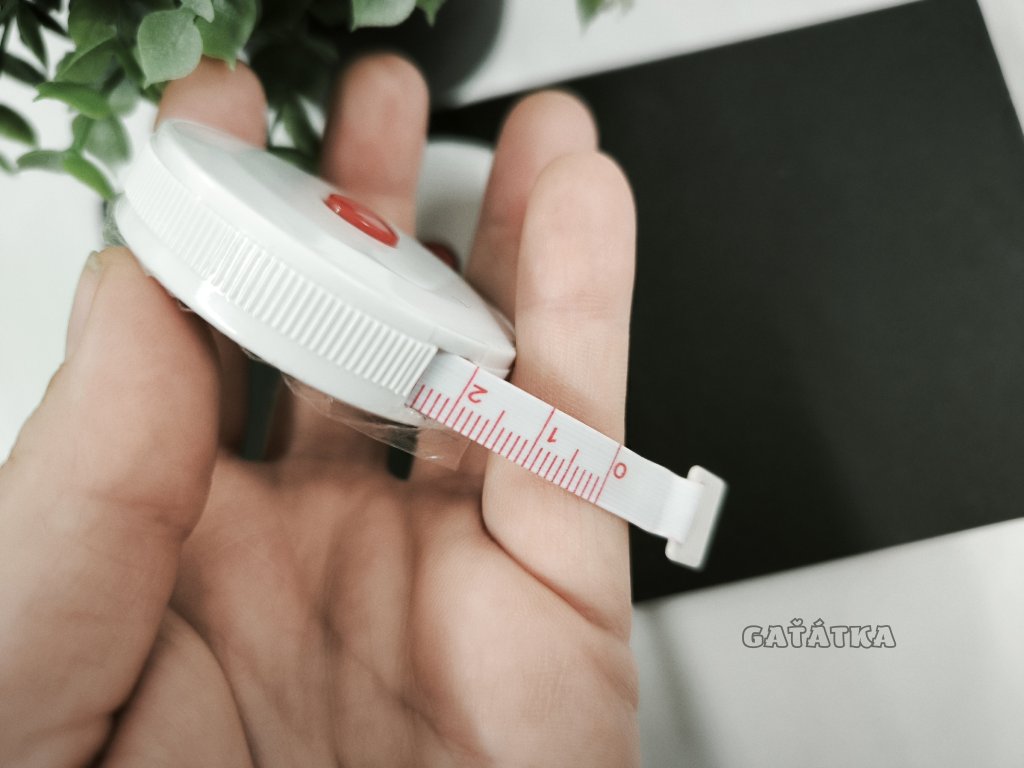 Samonavíjecí krejčovský metr s délkou 150 cm a oboustrannou stupnicí v centimetrech.