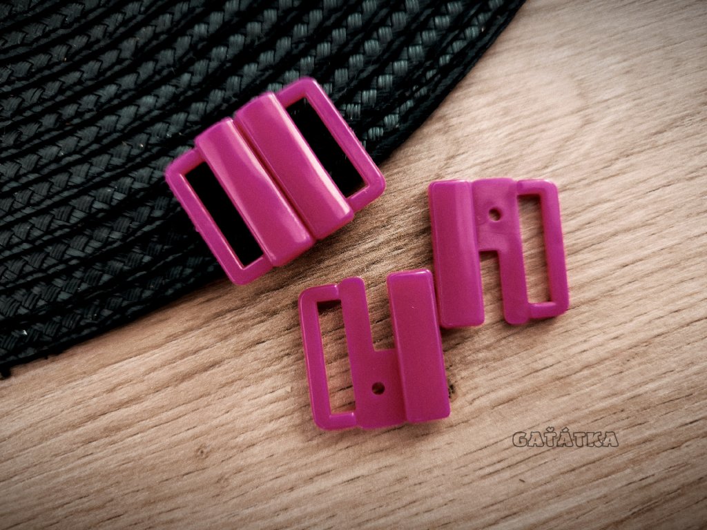 Dvoudílné plastové zapínání na podprsenky či plavky.