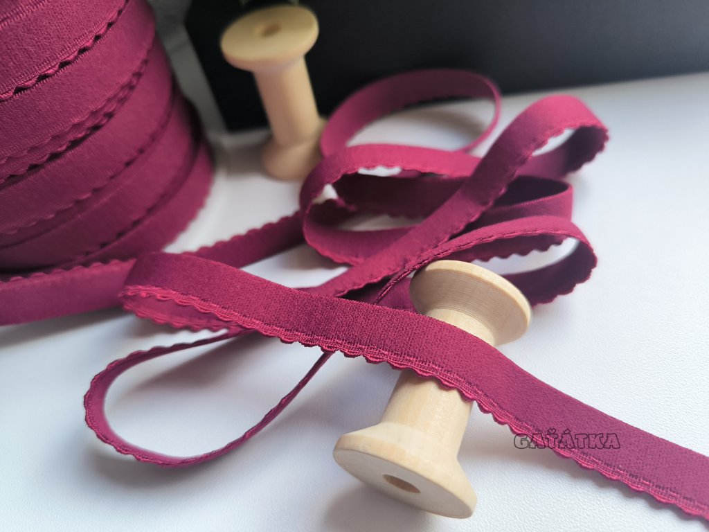 Jemná, úzká a pružná gumička vhodná na lemování obvodu podprsenky i kalhotek.