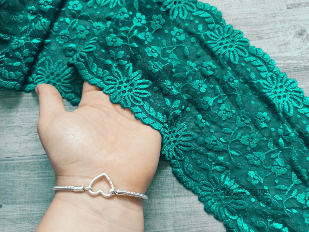Prošívaný pružný tyl - 15,5cm - Smaragdová