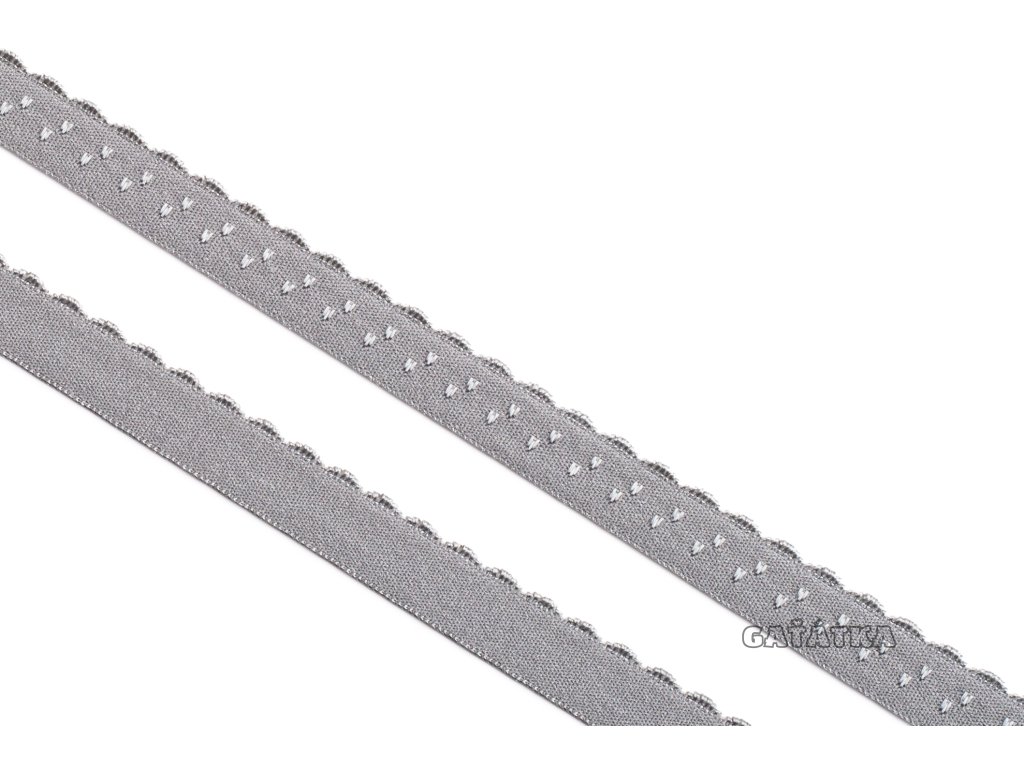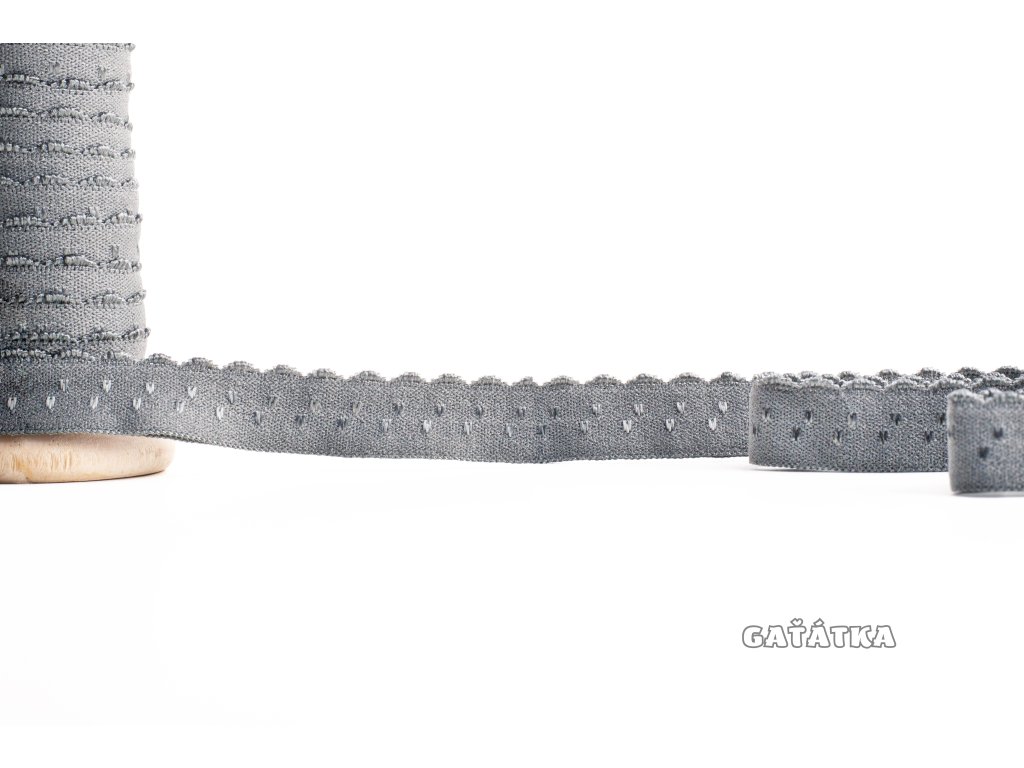 Ozdobná lemovací půlená gumička. Pruženka je ve stavu již složeném. Šíře ve složeném stavu je tedy 12mm.