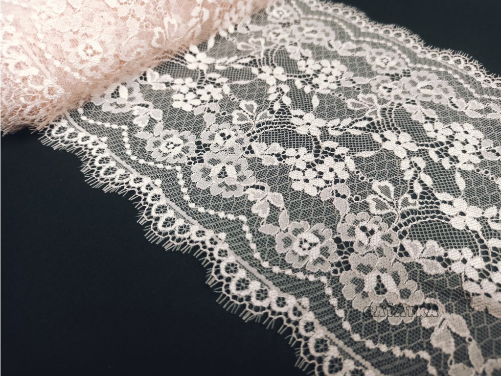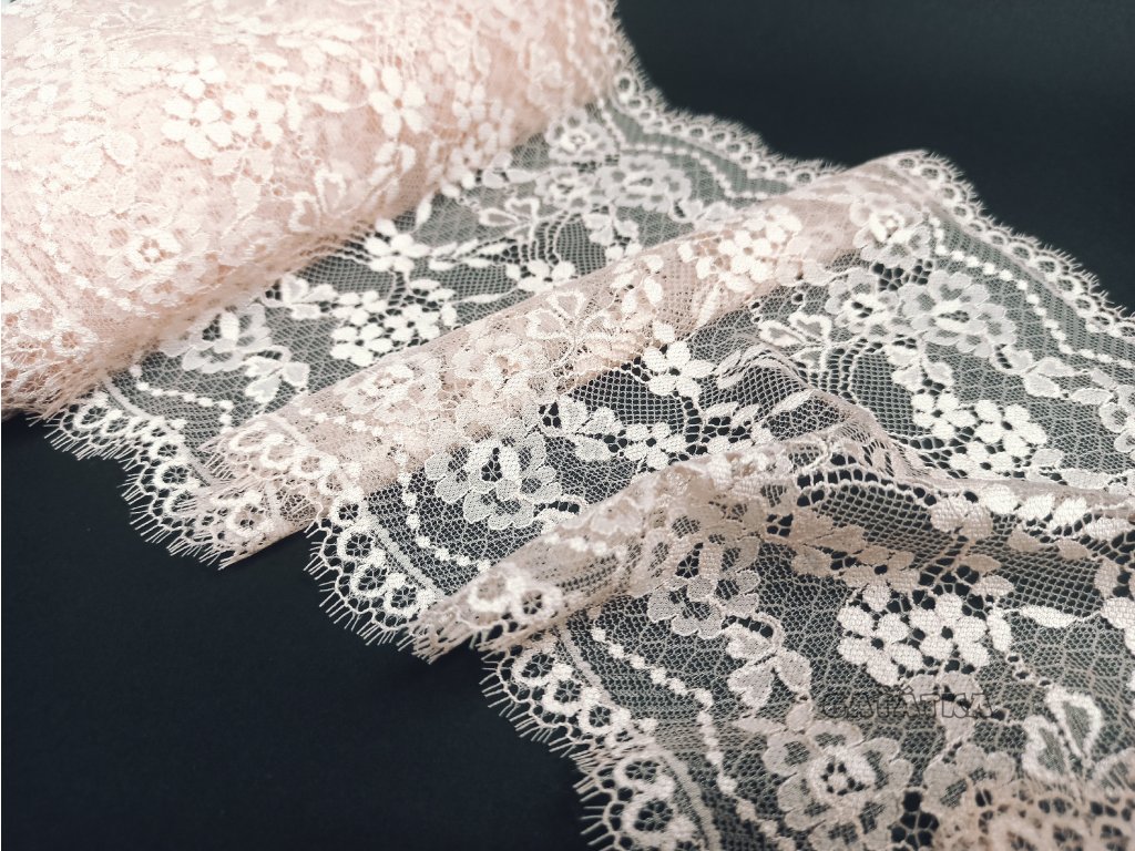 Krásná jemná elastická francouzská krajka v šíři 195mm (19,5cm).