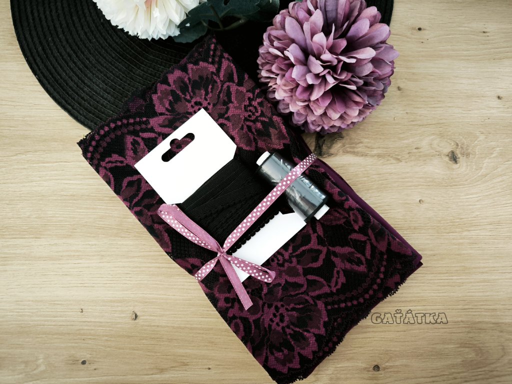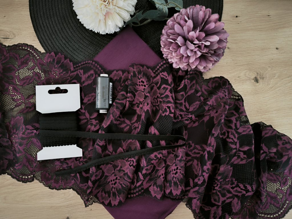 Sada na ušití dámského prádla s krajkou - černo/plumred