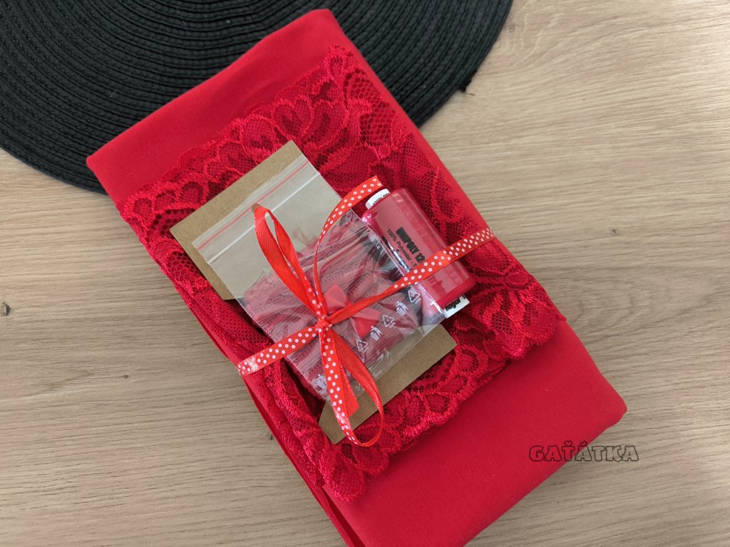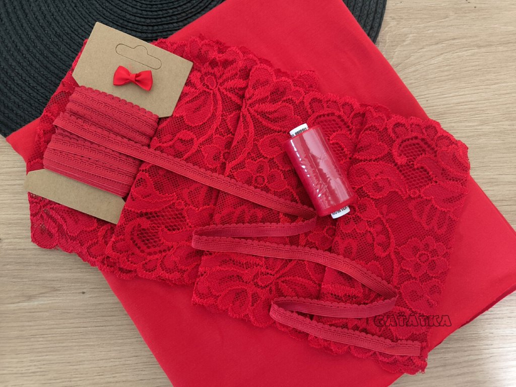 Sada na ušití dámského prádla s krajkou - červená