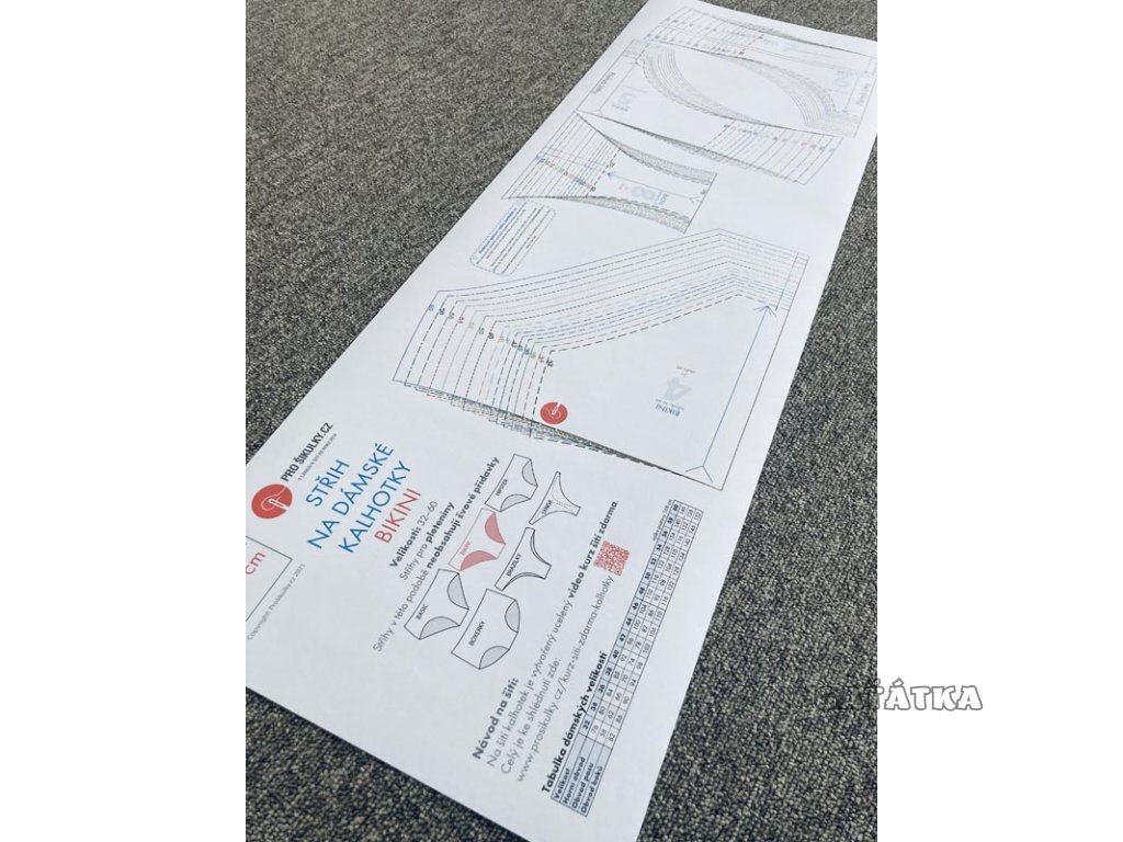Tištěný střih na dámské kalhotky je zpracovaný v profesionálním programu pro konstrukci střihů a je vyvedený ve velikostech 32–60