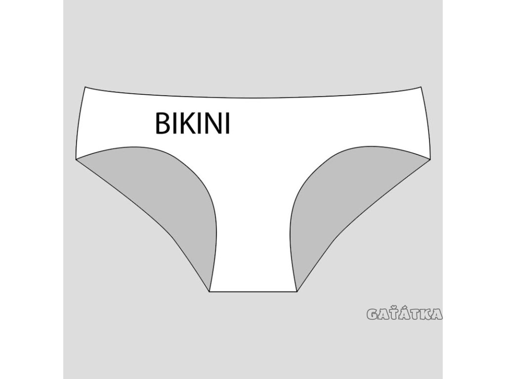 - BIKINI - kalhotky klasického střihu s rovně střiženým zadním dílem a nižším pasem. Zadní díl půlený (možnost odšít v jednodílné verzi), přední díl s možností členění do sedla.