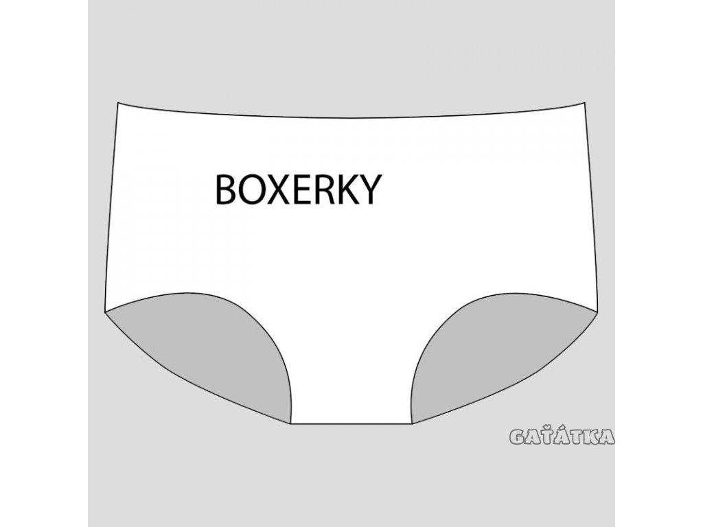 - BOXER SHORTS - boxerky - kalhotky s "nohavičkou", delším bočním švem a nižším pasem. Zadní díl půlený (možnost odšít v jednodílné verzi). Přední díl s možností vsadky do bočního švu