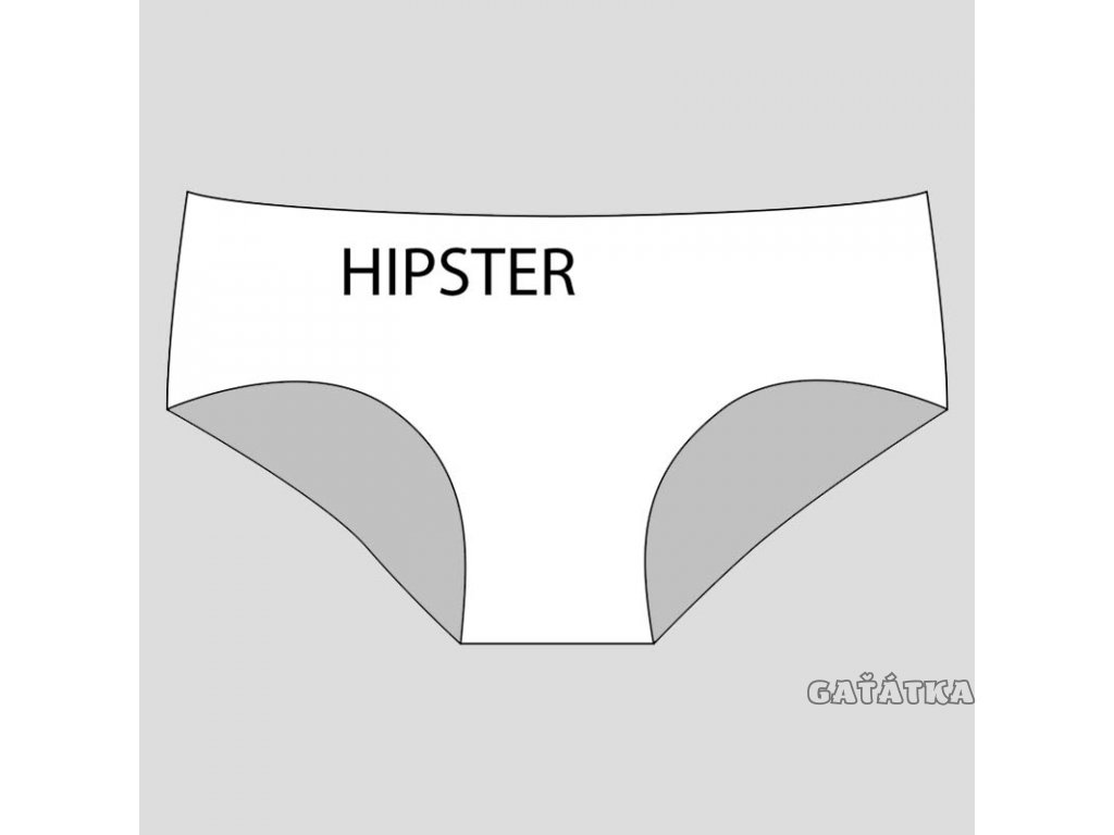 - HIPSTER - kalhotky s nízkým pasem a vykrojenějším předním i zadním dílem. Zadní díl půlený (možnost odšít v jednodílné verzi), s možností vsadky do zadního středového švu.
