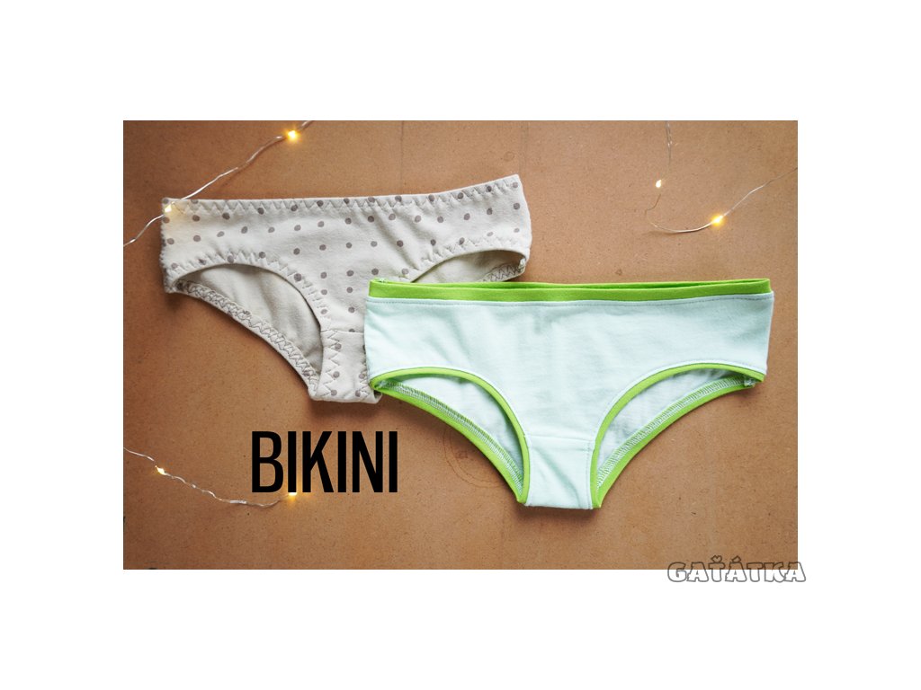 - BIKINI - kalhotky klasického střihu s rovně střiženým zadním dílem a nižším pasem.