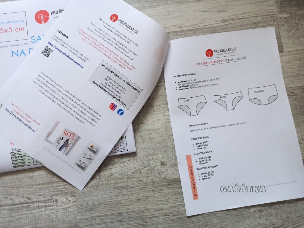 Tištěný střih na dětské kalhotky - sada - Prošikulky