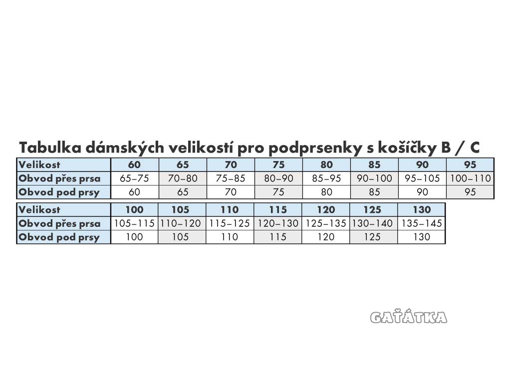 - Střih na dámskou braletku je zpracovaný v profesionálním konstrukčním programu pro obvod pod prsy 60–130 cm a obvod přes prsa 65–145 cm.