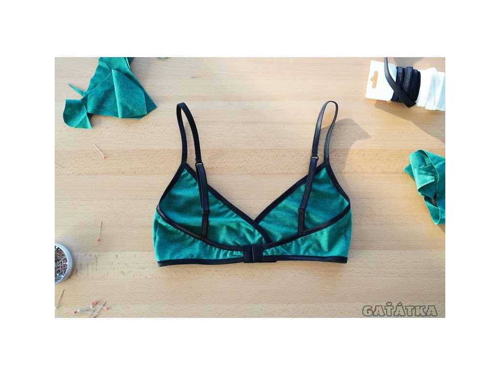 Jednoduchá dámská měkká podprsenka bez kostic (braletka) s nízkou oporou je vhodný pro velikost košíčků B–C. Pro větší oporu je možné ušít přední díl dvojitý. Zadní díl je na klasické dvouřadé zapínání. Dámská braletka je vhodná na doma, na nenáročný sport (jóga, pilates apod.) nebo třeba na spaní.
